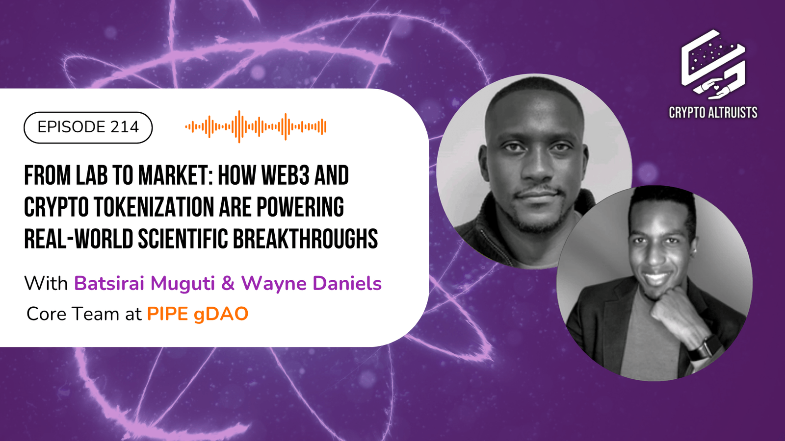 - 🎧 Crypto Altruists Ep. 214 – PIPE gDAO: From Lab to Market: Batsirai Muguti and Wayne Daniels share how PIPE gDAO’s DeSci launchpad uses blockchain, tokenized governance, and community review to fund and scale university innovations, bringing deep tech from academic IP to real-world impact.