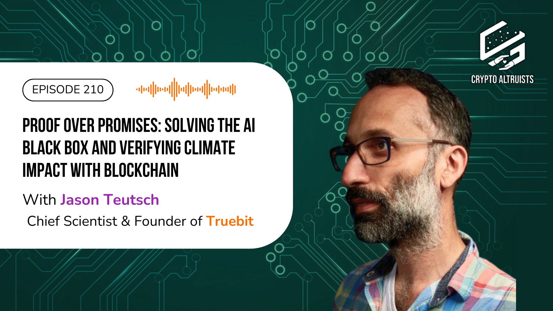 - đ§ Crypto Altruists Episode 210 â Truebit: Solving the AI Black Box and Verifying Climate Impact with Blockchain: Jason Teutsch, Founder of Truebit, explains how verifiable computation can help tackle AI opacity, rebuild trust in digital systems, and enable proof-backed climate and impact data using blockchain infrastructure.